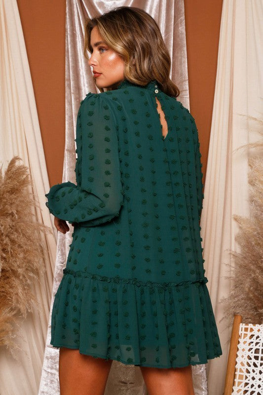 Bubble Sleeve Ruffled Mock Dress