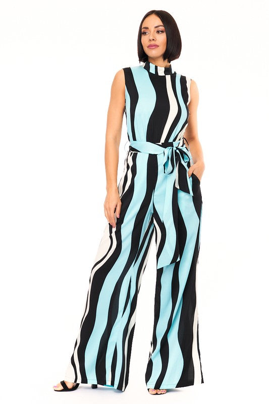 STRIPE PRINT FASHION WOVEN JUMPSUIT.